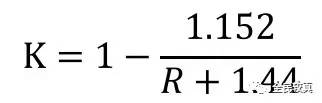 另外,其中室内空间V可以由使用面积乘以层高得来,层高按照2.4米估算,同时令CADR与使用面积的比值为R,令室内防护系数为K,带入所有数据得到: